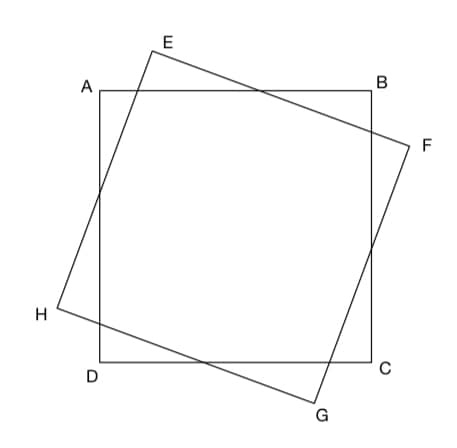 Square ABCD is rotated 20° clockwise about its center to obtain square EFGH, as shown below. What is the degree measure of ?(2023 AMC10B Q7)